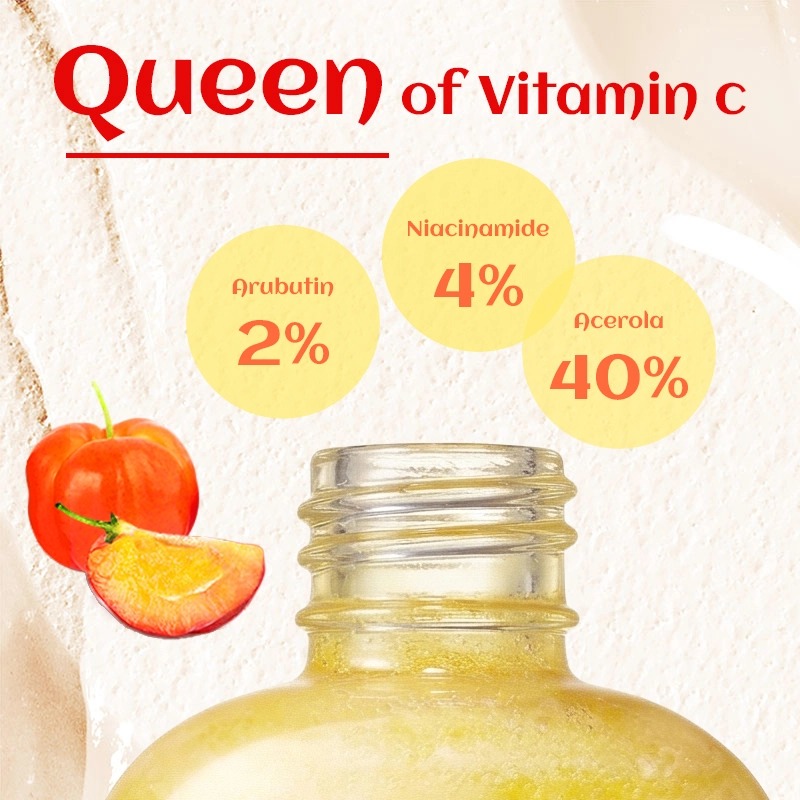 ⇒ Vitamine C (40% acerola-kersenextract): De acerola-kers staat bekend als de "koningin van de vitamine C" en levert een zeer stabiele, milde vorm van vitamine C. Het biedt krachtige antioxidante bescherming, verheldert de teint en ondersteunt de huidbarrière voor een langdurige, stralende huid.