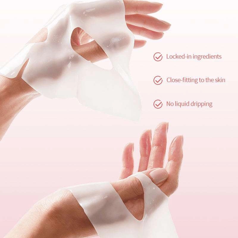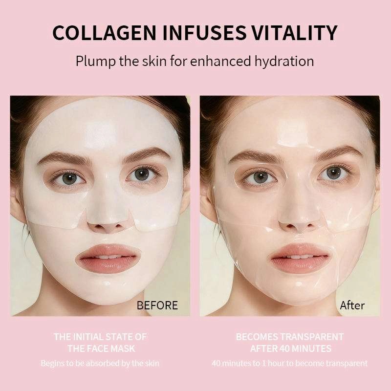 Het masker is aanvankelijk wit en wordt na 40-60 minuten geleidelijk transparant, wat aangeeft dat de collageenessence volledig in de huid is opgenomen voor intensieve voeding.