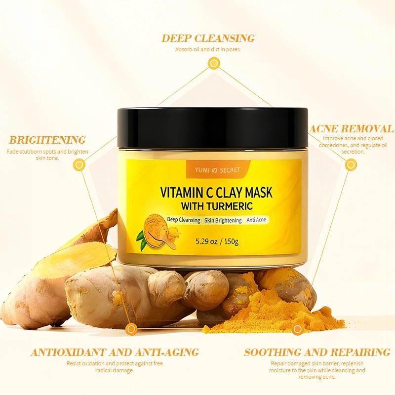 ⇒ Vitamine C + Kurkuma Kleimasker: 150 g/5,29 oz kernformule voor een stralende huid en tegen acne.