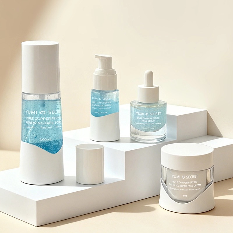 Ons team van professionele wetenschappers met een doctoraat heeft de Blue Copper Peptide-serie ontwikkeld met microcapsuletechnologie. Deze milde maar zeer effectieve anti-aging huidverzorgingslijn is speciaal ontworpen voor de gevoelige en roodheidgevoelige huid en wordt geproduceerd in onze GMPC-gecertificeerde cleanroom. Als totaalleverancier van huidverzorgingsproducten onder private label met meer dan 20 jaar ervaring, bieden wij uitgebreide ondersteuning voor uw merk in elke fase, van de eerste formulering en diepgaande technische integratie tot het ontwerp van de verpakking op maat en de uiteindelijke productie.