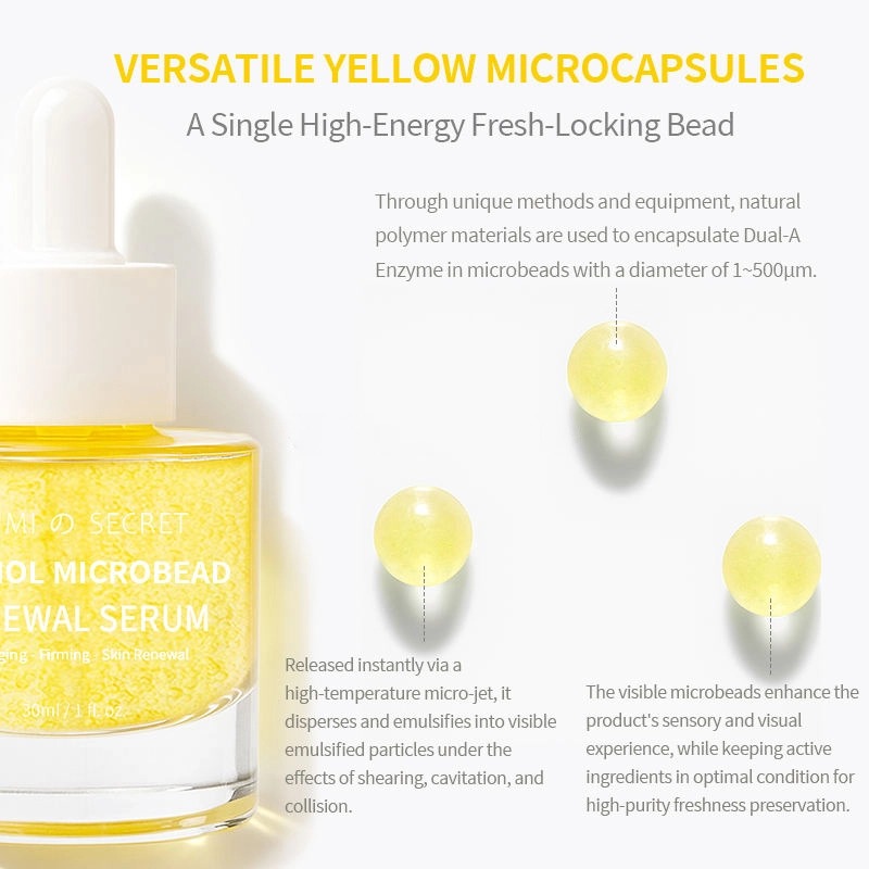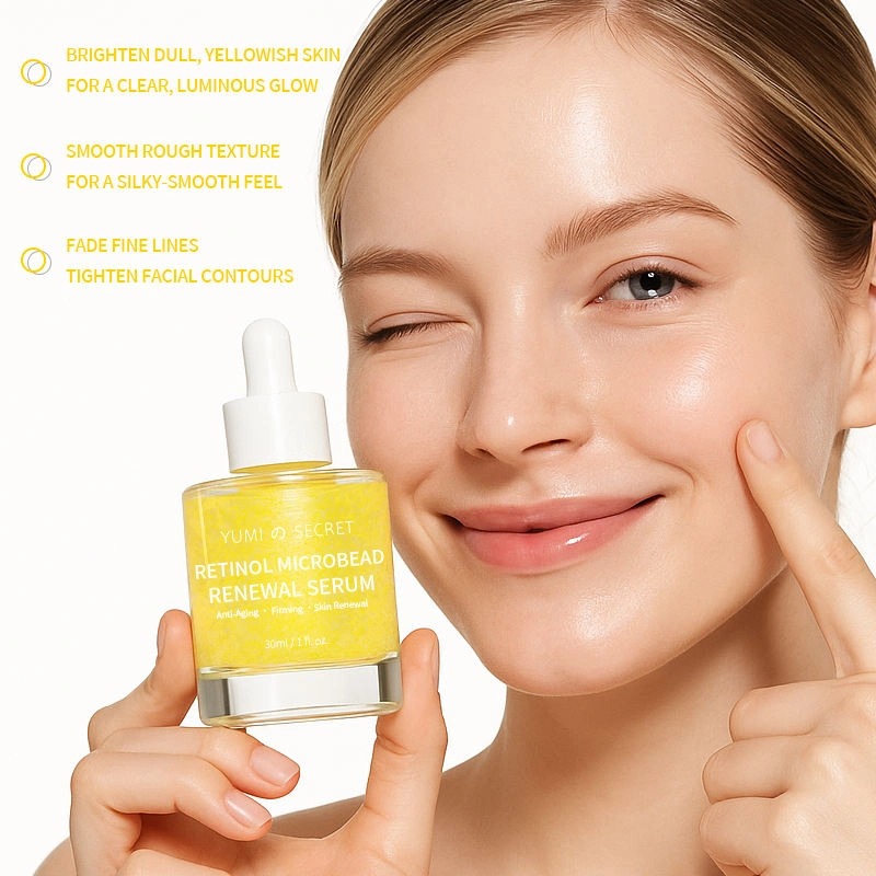 Ons Retinol Microbead Renewal Serum is een zeer effectief anti-aging huidverzorgingsproduct met innovatieve micro-encapsulatietechnologie die de huid fris houdt. De formule bevat retinol, Pro-Xylane, collageenpeptiden en diverse verzachtende ingrediënten, en biedt verstevigende, rimpelverminderende, verhelderende, hydraterende en huidbarrièreherstellende effecten. Dankzij de lichte textuur, geschikt voor alle huidtypen, bieden wij volledige OEM/ODM-maatwerkservices.