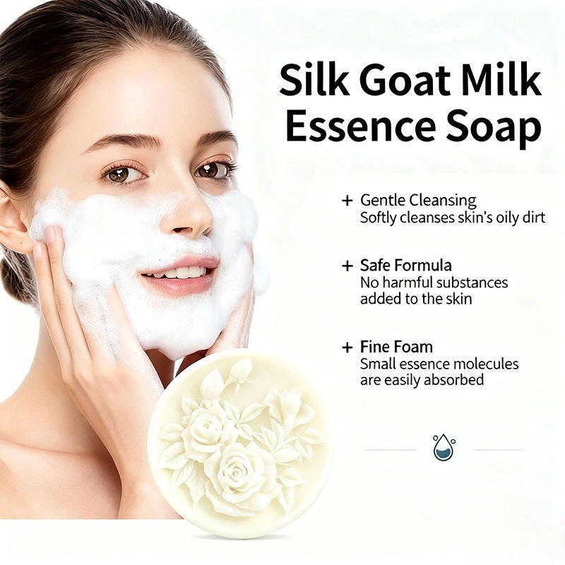 Onze geitenmelk-zijdeproteïnezeep is een alles-in-één huidverzorgingsproduct. Verrijkt met geitenmelk en zijdeproteïne, reinigt, verheldert, hydrateert en bestrijdt het acne. Mild voor alle huidtypen, geschikt voor gezicht en lichaam, en voorzien van een elegant 3D-roosdesign.