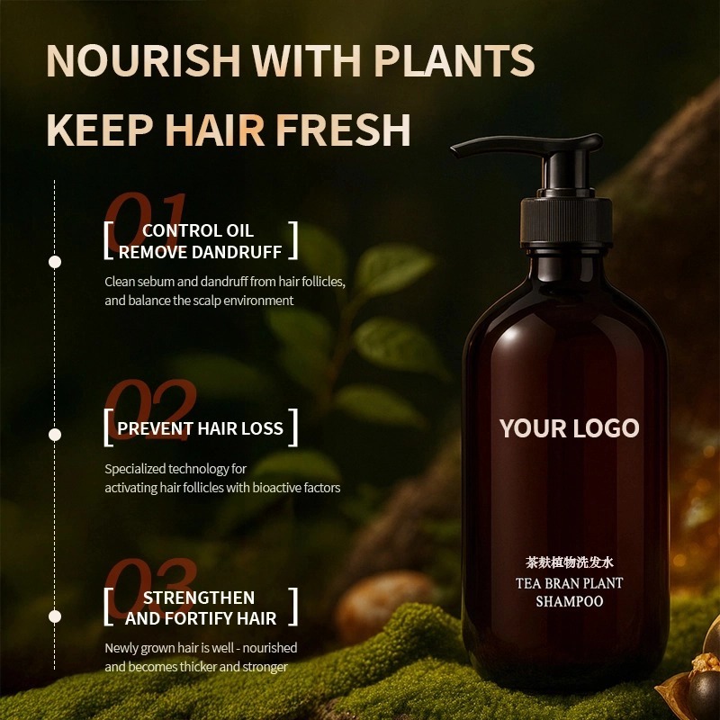 Deze plantaardige shampoo is verrijkt met gefermenteerde cameliazaadkoek (theezemelen), een traditioneel natuurlijk reinigingsmiddel. De formule, verrijkt met actieve bestanddelen uit cameliazaad, pakt veelvoorkomende hoofdhuid- en haarproblemen aan, zoals overtollig talg, roos, haaruitval en droogheid of beschadiging. De shampoo reinigt en balanceert de talgproductie, versterkt de haarwortels en voedt het haar van binnenuit. Mild en niet-irriterend, ideaal voor iedereen die op zoek is naar een natuurlijke, gezonde hoofdhuidverzorging. De formule is ook beschikbaar voor OEM/private label, met volledige aanpassingsmogelijkheden, inclusief uw merklogo.